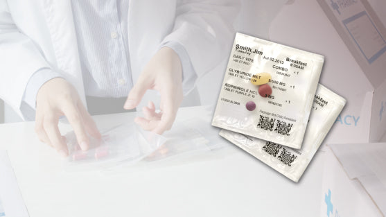 We make it easy for our patients to take the right medication at the right time, every time. Multi-dose packaging replaces bulky blister packs, numerous pill bottles, and cumbersome medication organizers. Prescriptions, over-the-counter medications, and even vitamins and supplements can be packaged together, organized by day and time of dose in clearly labeled plastic pouches.